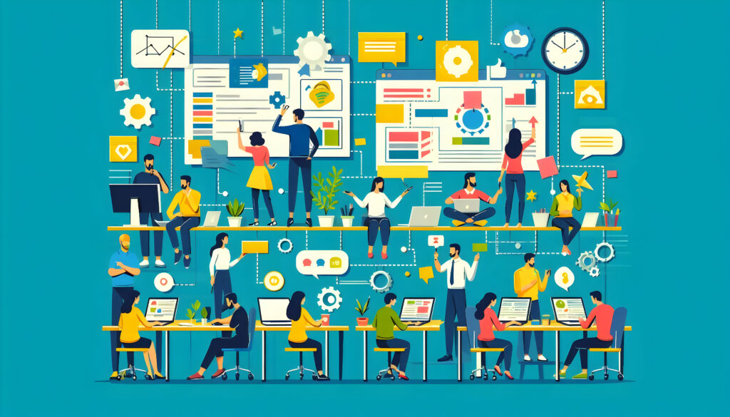 開発現場では、役割分担が明確です。システムエンジニア(SE)が要件定義や設計を担当し、プログラマーがコーディングを行うなど、各自が専門性を発揮します。チームでのコミュニケーションや情報共有が欠かせないため、協調性や報連相(報告・連絡・相談)が重視されます。近年はアジャイル開発やリモートチームでのプロジェクトも増えており、柔軟な働き方や新しい開発手法にも対応できる力が求められています。