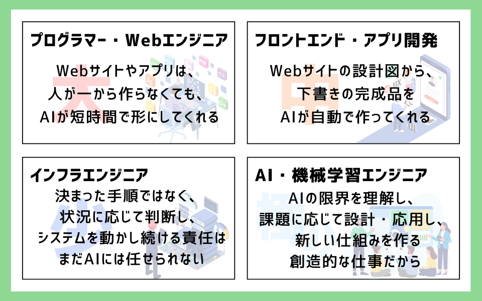 インフラエンジニアは、AIの影響を比較的受けにくい職種です。