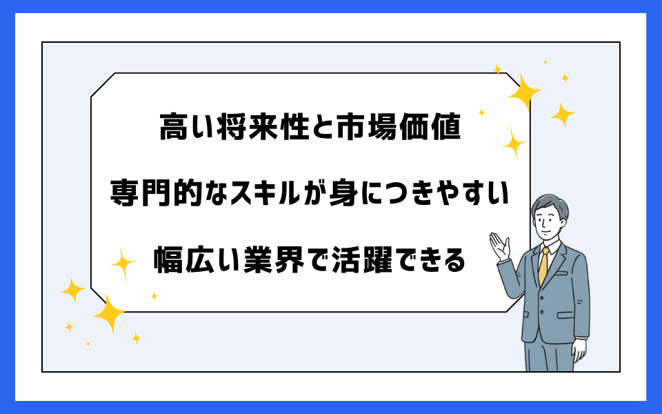 システムエンジニアの仕事は、論理的思考力、問題解決能力、プロジェクト管理能力など、汎用性の高い専門スキルを実務を通して身につけることができます。これらのスキルは、たとえ将来別の職種に就いたとしても、あなたのキャリアにとって大きな財産となります。まさに「手に職がつく」仕事と言えるでしょう。