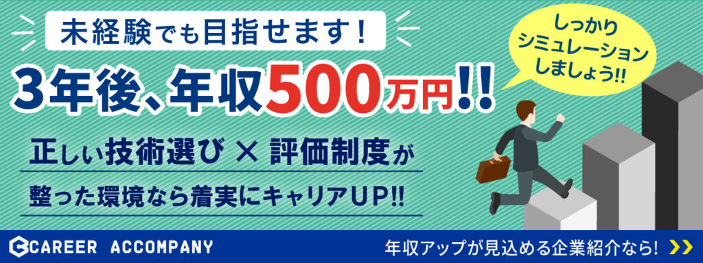 | 未経験〜1年 | 250〜350万円 | 100〜200万円 |